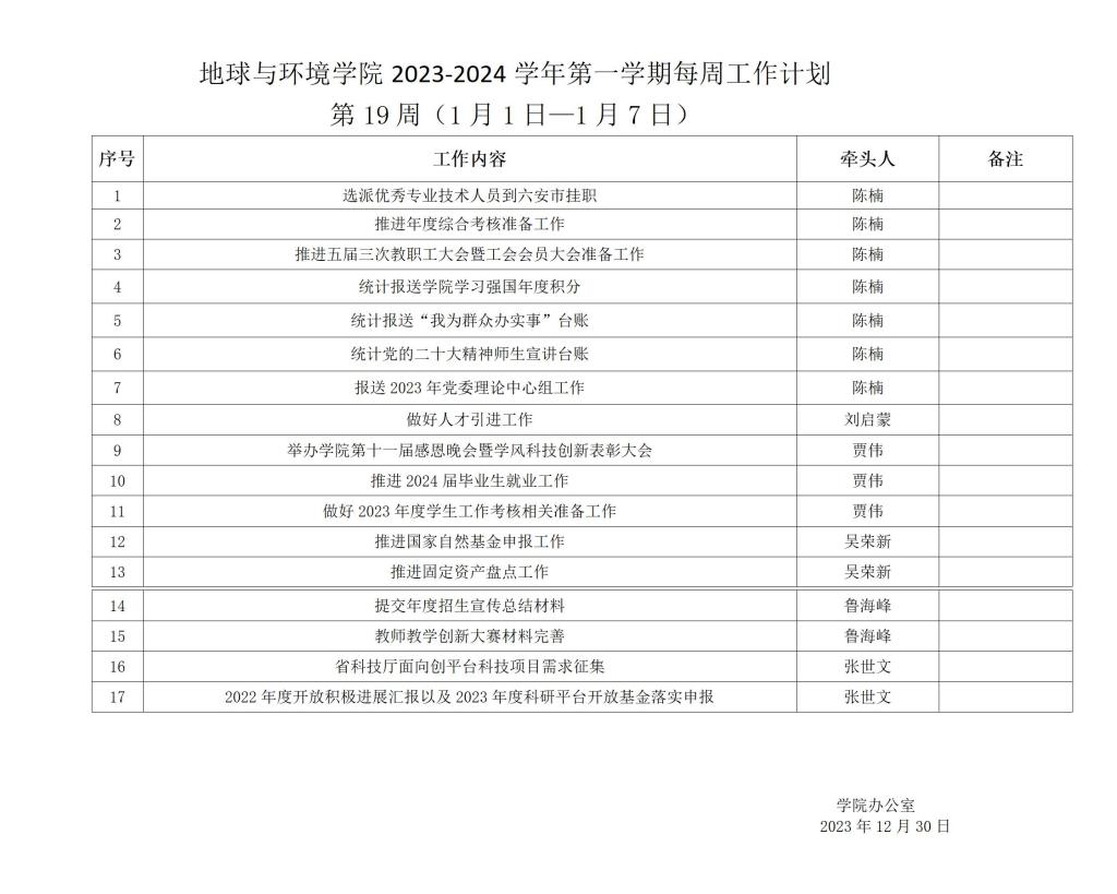 电子轮盘 2023-2024学年第一学期第19周(1月1日—1月7日)工作安排