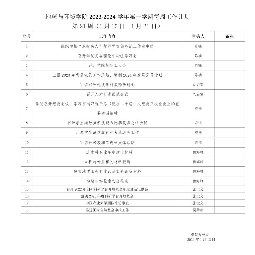 电子轮盘 2023-2024学年第一学期第21周(1月15日—1月21日)工作安排