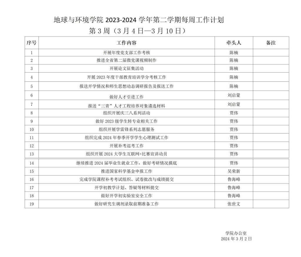 电子轮盘 2023-2024学年第二学期第3周(3月4日—3月10日)工作安排