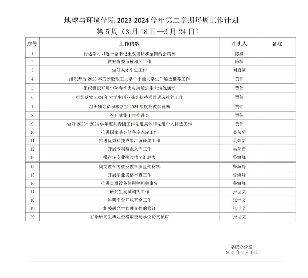 电子轮盘 2023-2024学年第二学期第5周(3月18日—3月24日)工作安排