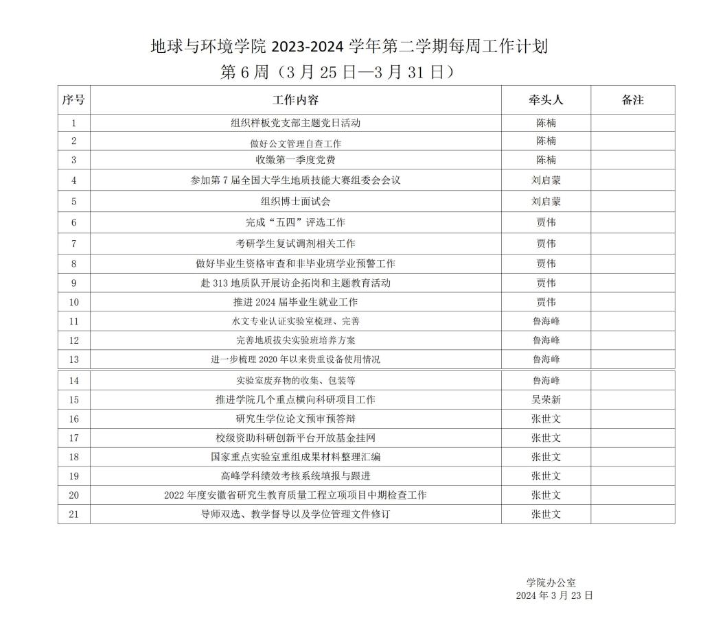 电子轮盘 2023-2024学年第二学期第6周(3月25日—3月31日)工作安排