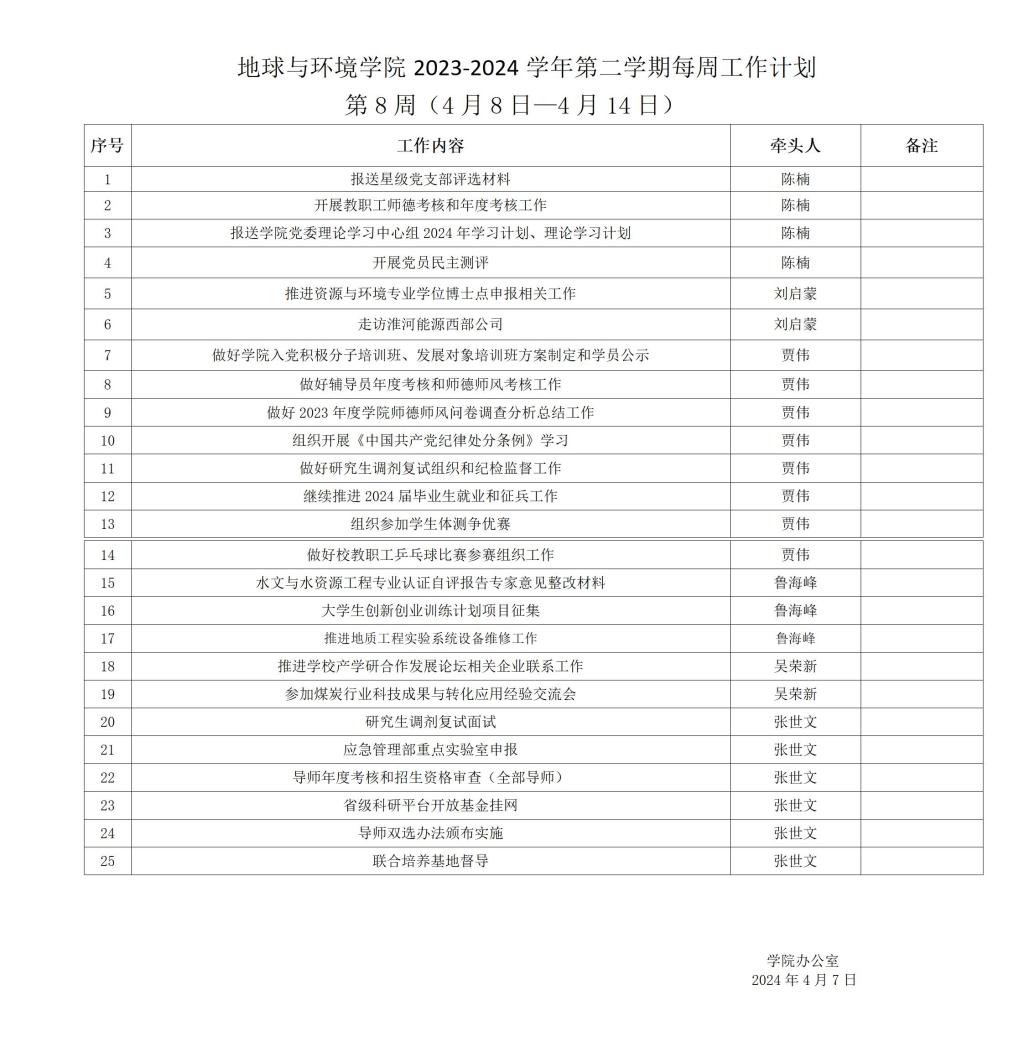 电子轮盘 2023-2024学年第二学期第8周(4月8日—4月14日)工作安排