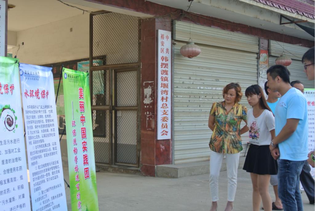 每到一村,同学们首先积极向当地村委领导了解村容村貌,做整体认知,然后队员们走村入户,深入调查美好乡村建设中环保工作的开展情况。同时开展环保科普活动,通过环保展板、问卷调查、环保科普宣传册、环保宣讲会等形式向村民介绍环保的方法及途径,宣传环境保护事业在美好乡村建设与发展当中的重要地位。同时,开展村民座谈,利用专业知识从制度到行为,从整体到个别观察分析环保工作落实情况,并提出合理意见。