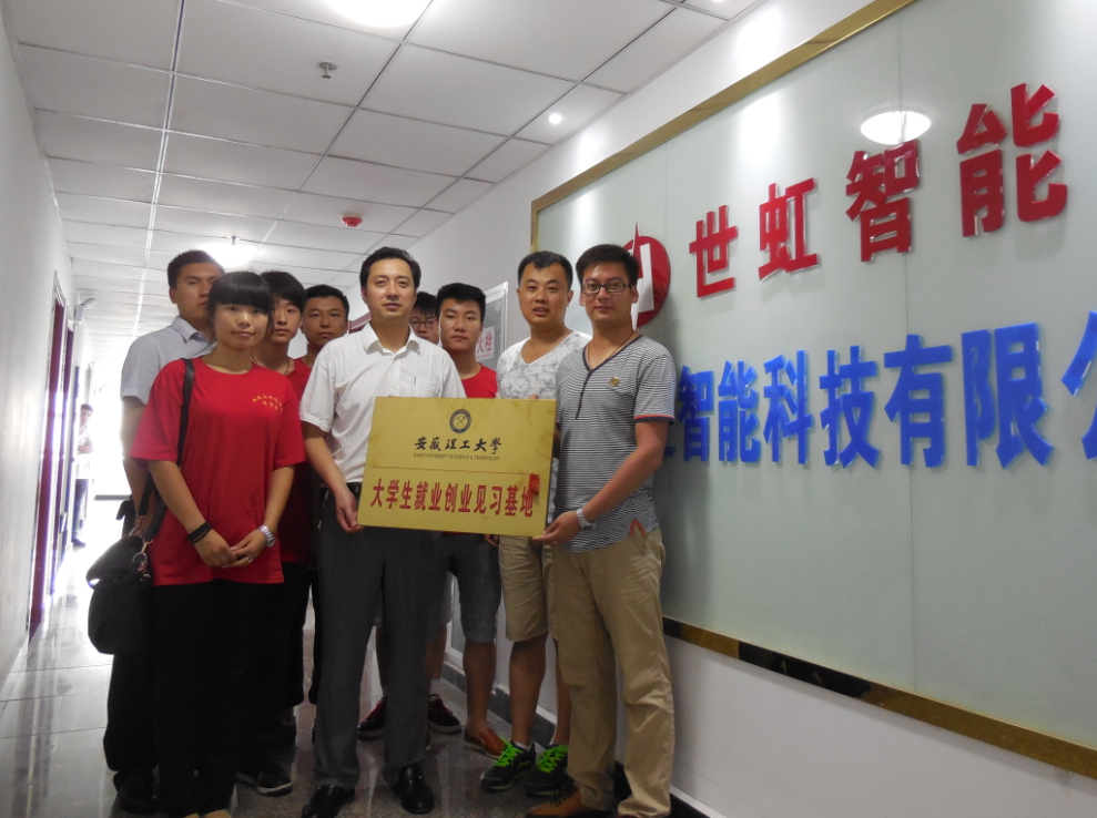 7月13日,电子轮盘 又一大学生就业创业见习基地在安徽世虹智能科技有限公司挂牌成立。电子轮盘 党委副书记侯辉,安徽世虹智能科技有限公司总经理王明耀,电子轮盘 团委副书记邵飞及暑期社会实践大学生志愿者参加了挂牌仪式。