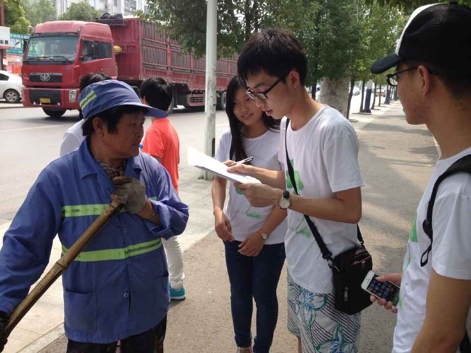 志愿者通过发放环保宣传单、填写调查问卷等,宣传垃圾分类、处理等环保知识,传播环保理念。在街道社区访谈环卫工人、“环保有心人”,了解市民环保意识状况以及垃圾回收与处理情况,切身体验淮南市小区生态文明建设的进展。