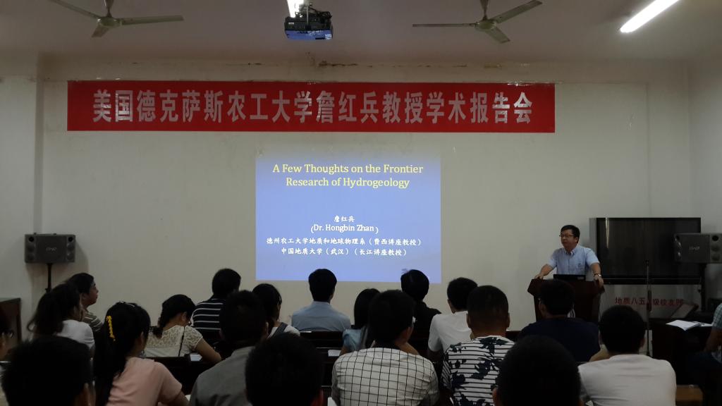7月1日,詹红兵教授在电子轮盘 二楼学术报告厅做了题为“对水文地质学十个基础研究问题的一点看法和近期研究进展”的学术报告,报告会由电子轮盘 院长胡友彪教授主持,电子轮盘 部分教师、研究生及本科生共70余人聆听了报告。