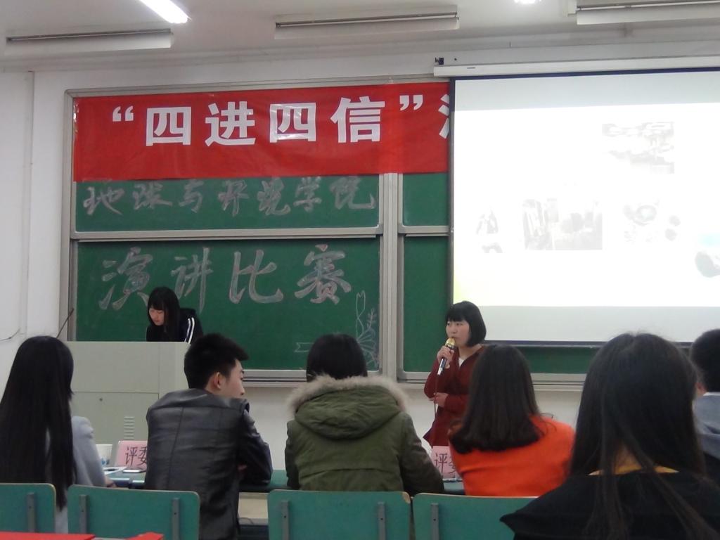 比赛中,18名选手们围绕“理想信念”、“勤学修德”等话题,结合学习生活实际,从学生成长成才的需要出发,努力做到学而信、学而用、学而行,用慷慨激昂的演讲抒发自己对“四进四信”的感悟。最终,经过激烈比拼,地质15-3班王泽成获得一等奖,给排水15-1班张智钰等2人获得二等奖,地理15-1姜冬等3名同学获得三等奖。