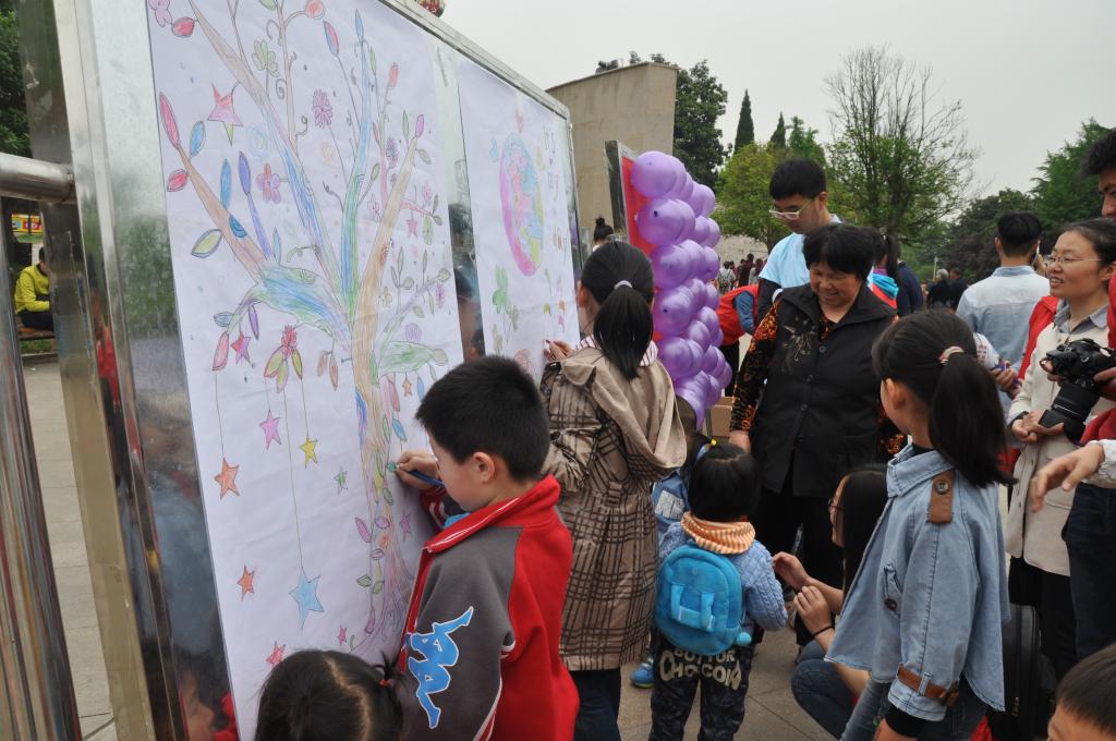 活动现场,志愿者们组织小朋友们开展了彩绘地球家园活动,数十名小朋友一齐动手,在彩绘墙上共同彩绘出心目中的地球。同时,志愿者们还组织了地球科普知识有奖问答和废旧物品置换绿色植物活动,提醒市民环保人人可为。