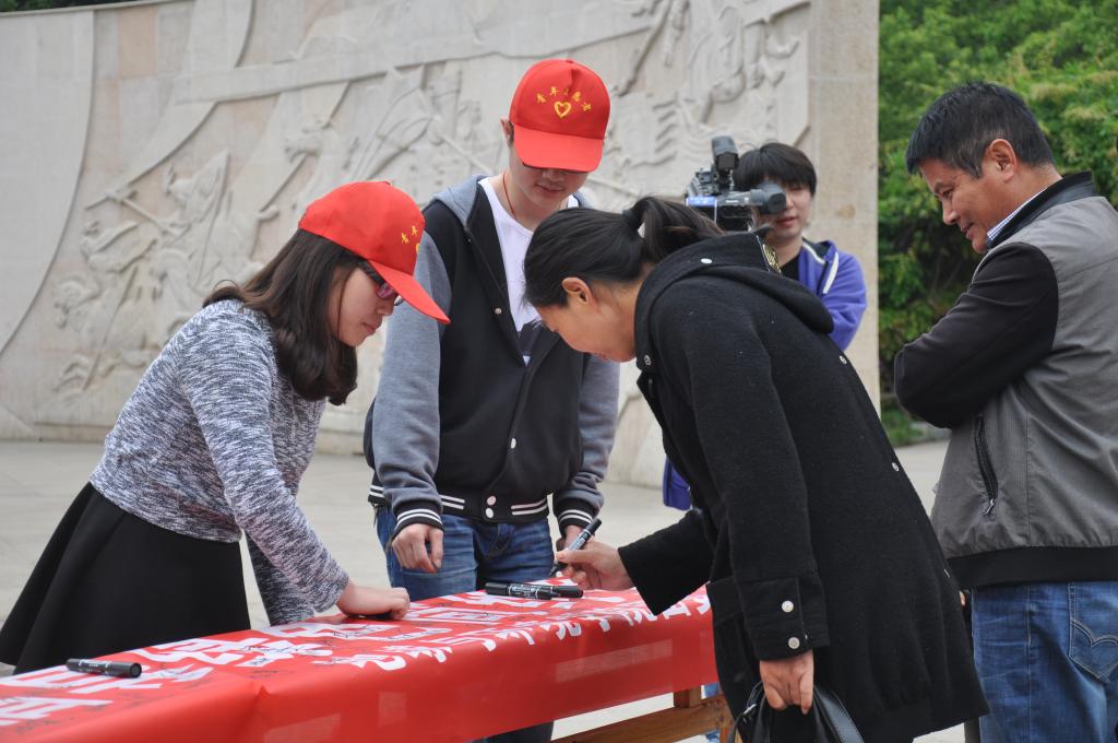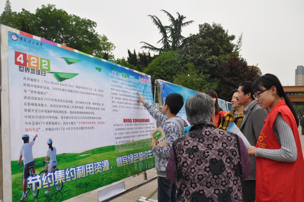 上午9点, 50多名大学生科普志愿者在公园广场通过专题展板讲解、签名、发放宣传资料、有奖问答、播放音像资料等多种方式向市民普及地球资源、物种危机、低碳生活、环境保护、地质灾害防治等方面的知识,呼吁市民珍惜地球资源,积极参与节约集约利用资源,从身边的小事做起,践行绿色、低碳生活。