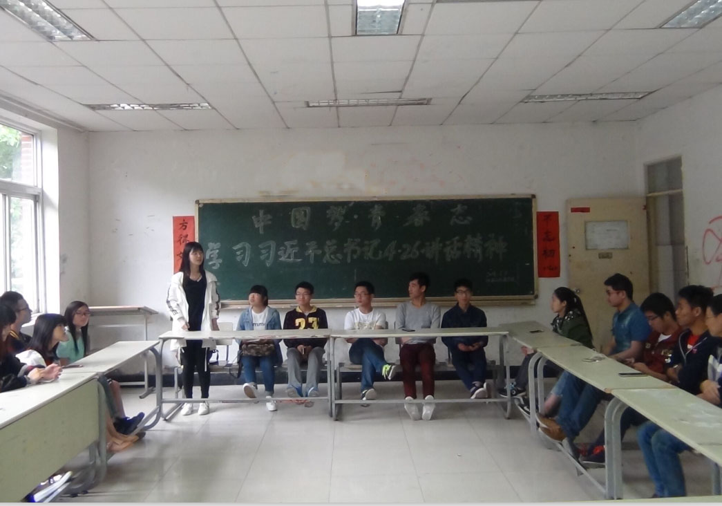 会上,邵飞带领大家共同学了习近平总书记在知识分子、劳动模范、青年代表座谈会上的重要讲话精神。随后,同学们结合青年成长与自身实际畅所欲言,2014级水文专业许春蕾同学认为,习近平总书记的讲话饱含了对当代中国青年的殷切关爱,为我们广大青年学生成长成才提供了重要方向指引;2015级环境专业何丽表示,学习了习近平总书记的讲话后,她觉得青年学生要“有理想而不是一味空想”,必须脚踏实地、投身实践;要“追梦而不是白日做梦”,能够把个人的发展与国家民族的前途命运紧密结合……