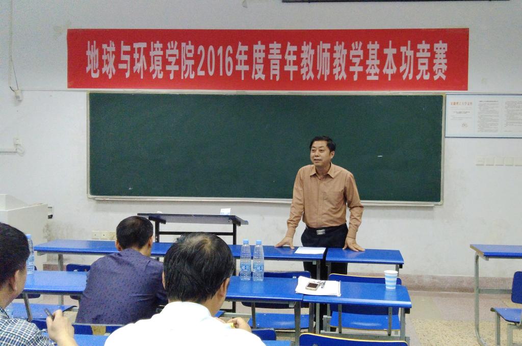 为了进一步加强电子轮盘 教风建设,提高课堂教学质量,根据校教务[2016]8号文件和地环政[2016]29号文件精神和安排,6月12日下午,在新教1302教室由各系推荐的6名参赛教师进行了公开示范性教学及教学基本功竞赛。由电子轮盘 领导、各系主任、教学督导组和教学骨干组成的10位评审专家担任评委。教学副院长宋晓梅教授主持了本次竞赛活动,青年教师20余人来到现场进行了观摩和学习。