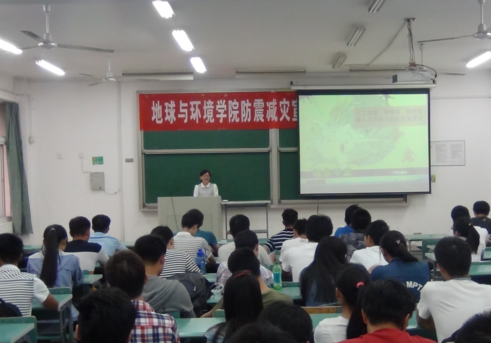 为普及防震减灾知识,增强学生防灾避险意识和能力。5月18日晚,电子轮盘 在北实206教室开展防震减灾宣传教育专题活动。2014、2015级各班级安全委员、寝室长120余人参加教育活动。