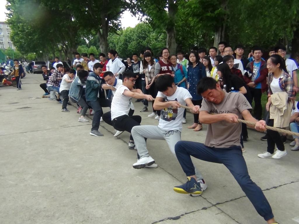 5月22日下午,电子轮盘 在北校区操场举办大学生拔河比赛。电子轮盘 团委邵飞老师到场观看比赛,为学子们加油助威。2015级各班级10支队伍参加比赛。
