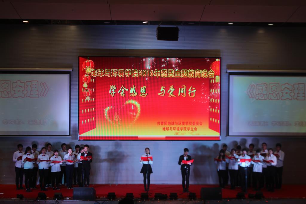 12月28日晚,电子轮盘 第六届感恩主题教育晚会在新校区舜耕会堂隆重举行。校党委常委、宣传部部长吴照明,校学生处处长田中良,校团委书记赵宁,电子轮盘 党政领导,各年级辅导员、2016级班主任与广大学生欢聚一堂,共同观看了演出。