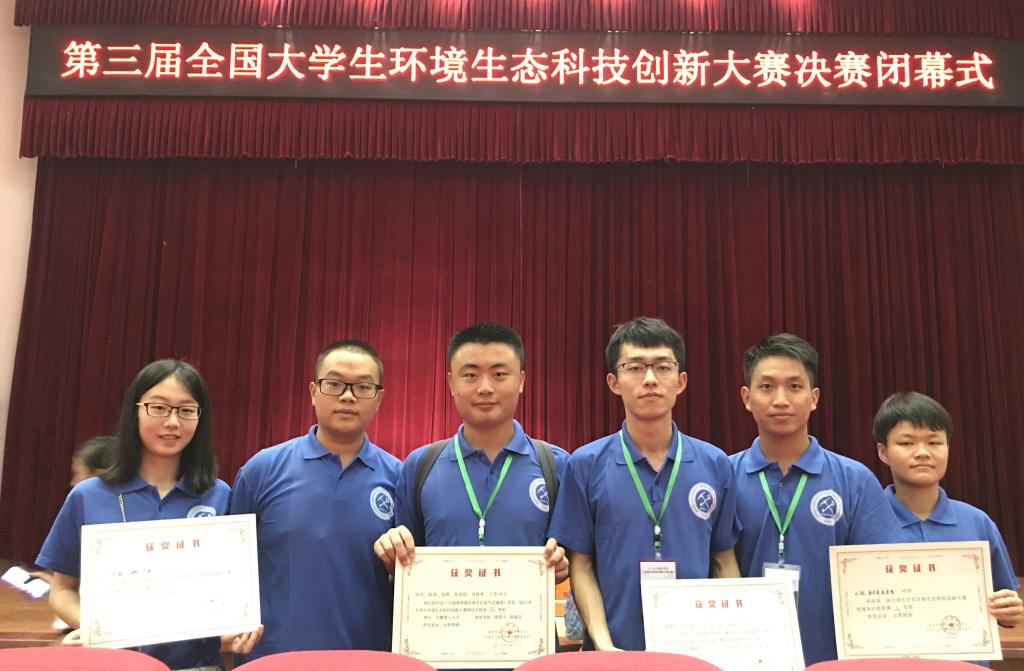 2017年9月15日至17日,由教育部高等学校自然保护与环境生态类专业教学指导委员会主办的“第三届全国大学生环境生态科技创新大赛决赛”在湖南长沙成功举办。我校首次参赛,获得二等奖1项、三等奖1项,同时获得单项三等奖2项。