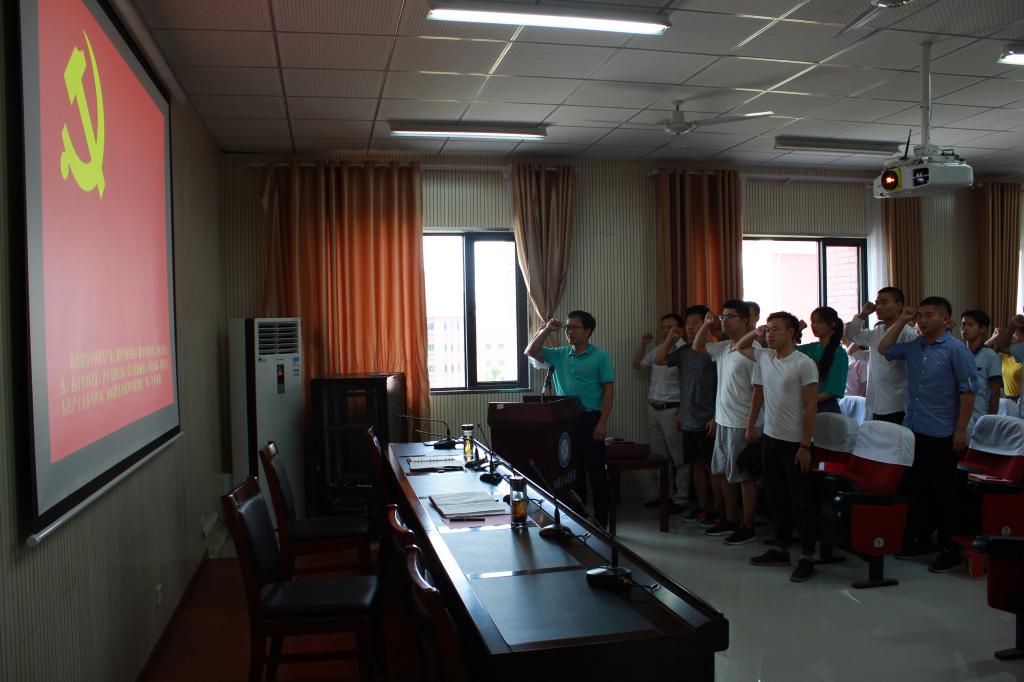 金德宣读了《关于表彰电子轮盘 2018年度学生优秀共产党员的决定》,作为领誓人带领全体党员庄严宣誓,重温了入党誓词。