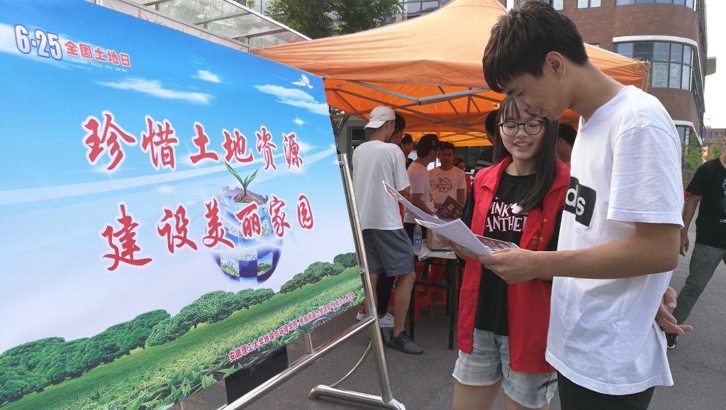活动现场,志愿者们还组织过往师生开展了保护国土资源创意作品征集活动,希望通过讲述人与地球的故事,来唤起人们珍惜自然资源、呵护美丽国土的意识。