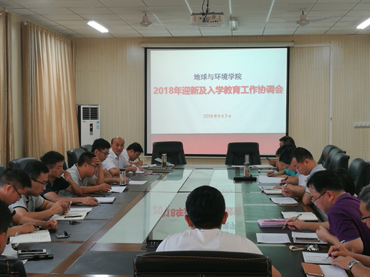 9月3日下午,电子轮盘 在静远楼B414会议室召开2018年迎新及入学教育工作协调会。电子轮盘 党政领导、各系主任、2018级班主任、两办人员和学生会负责人参加了会议。