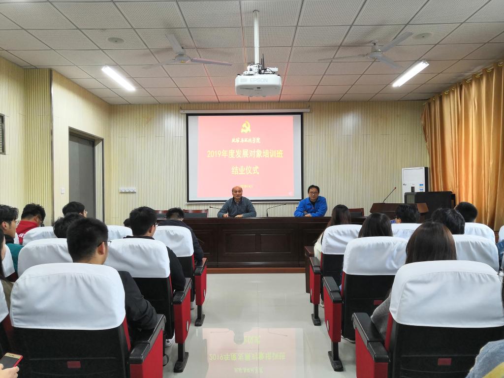 4月26日下,电子轮盘 在静远楼406报告厅举行2019年发展对象培训班结业典礼。电子轮盘 党委书记、分党校校长盛鹏飞出席典礼并讲话,院党委副书记金德主持结业典礼。各学生党支部书记和发展对象100余人参加结业典礼。