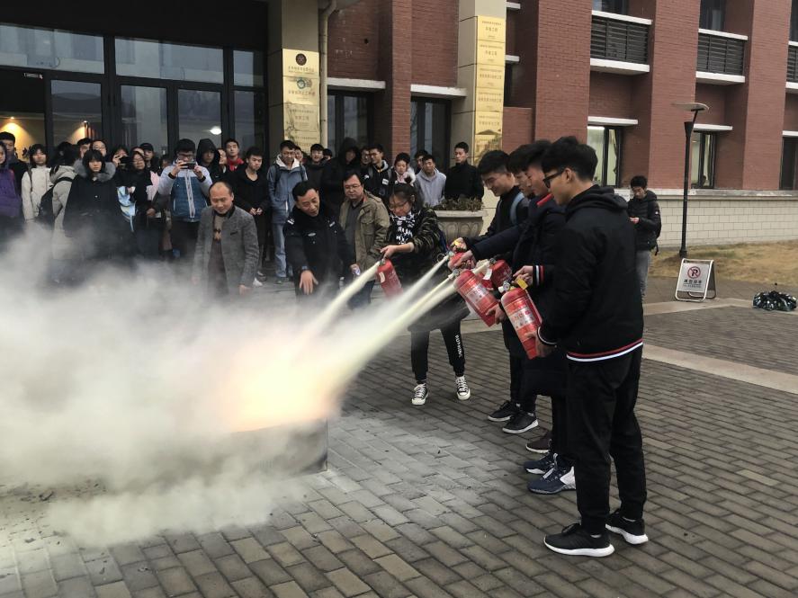 讲座结束后,在静远楼门前广场,彭广峰给电子轮盘 师生详细介绍了不同类型灭火器的工作原理、使用方法,并指导师生开展了现场灭火实战演练。