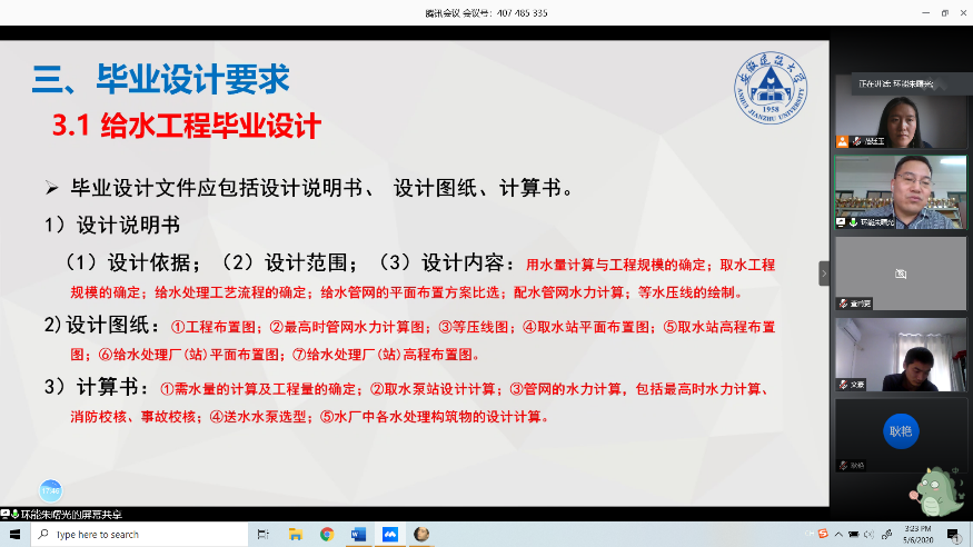 5月6日下午,安徽省普通高校土木建筑类专业合作委员会专家、安徽建筑大学环境与能源电子轮盘 院长朱曙光教授应电子轮盘 邀请,采用视频会议方式,对给排水科学与工程专业建设进行指导,环境与给排水工程系全体教师参加了会议。