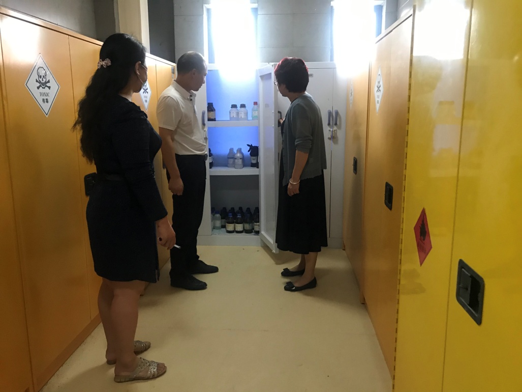 检查中,宋晓梅要求各实验室负责人,要时刻加强对实验室内部进行安全隐患的排查,确保实验室各功能的正常、环境干净有序。随后,检查组重点查看了药品室和有钢瓶的实验室,针对危化品和气瓶的危险性强、危害性大的特点,宋晓梅要求各负责人,一定严格执行双人管理、进出登记的制度,并按照规章制度做好废旧品的处理处置。