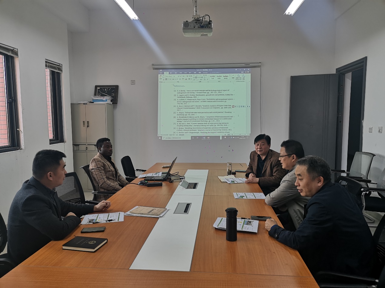 留学生Anesu Mabaire详细介绍了关于论文Hydrogeochemical characteristics of different aquifers and formed mechanisms in Gubei mine(顾北矿不同含水层的水文地球化学特征及其形成机制)选题目的与意义、国内外研究现状及存在问题、研究内容和研究方法等。指导教师许光泉教授对选题前期预研及相关工作开展情况进行了说明,其他与会老师对研究内容提出了修改意见和建议。