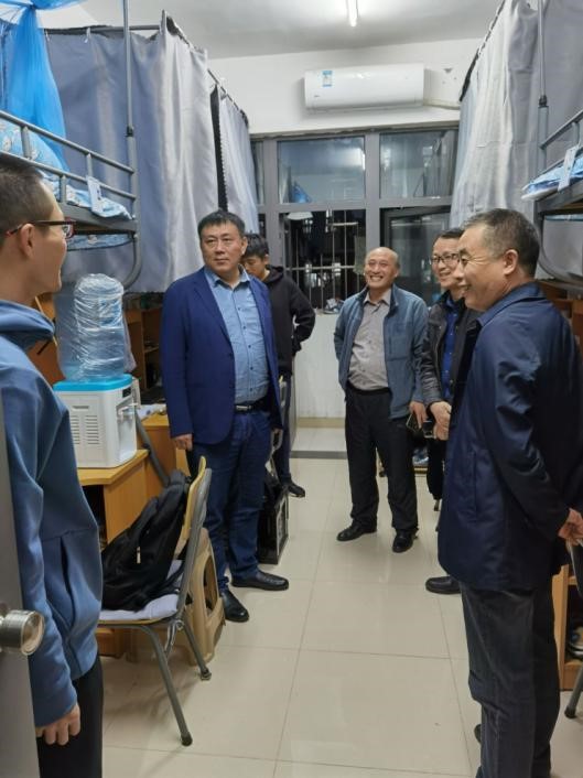 10月30日晚上,电子轮盘 党委书记盛鹏飞、执行院长刘启蒙、党委副书记金德、业务院长吴荣新带领各年级辅导员,深入仁苑学生宿舍楼检查安全与卫生。