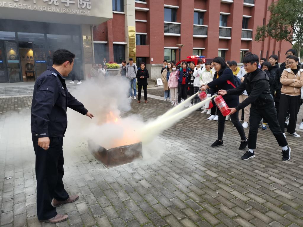 最后,在地环电子轮盘 楼前,彭老师现场教学常规灭火器的使用方法,师生们也都积极上前了解并亲自操作,让大家对灭火器的使用有了更直观的了解。此次消防知识讲座,很好地普及了消防安全知识,使师生们进一步树立了防患于未然的消防意识,增强了广大师生的自救技能,为构建“和谐平安校园”保驾护航。