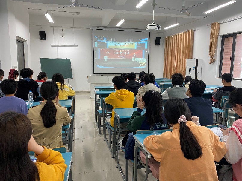 4月24日下午电子轮盘 在静远楼B202教室组织师生集中观看学习由教育部社会科学司和人民网共同主办的“四史”思政大课。电子轮盘 辅导员、2021年度发展对象和2019级学生干部代表参加了活动。