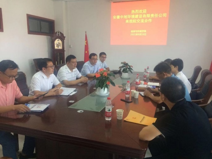 9月17上午,安徽中旭环境建设有限责任公司魏珍总经理一行4人来电子轮盘 交流调研,电子轮盘 院长刘启蒙主持交流会。