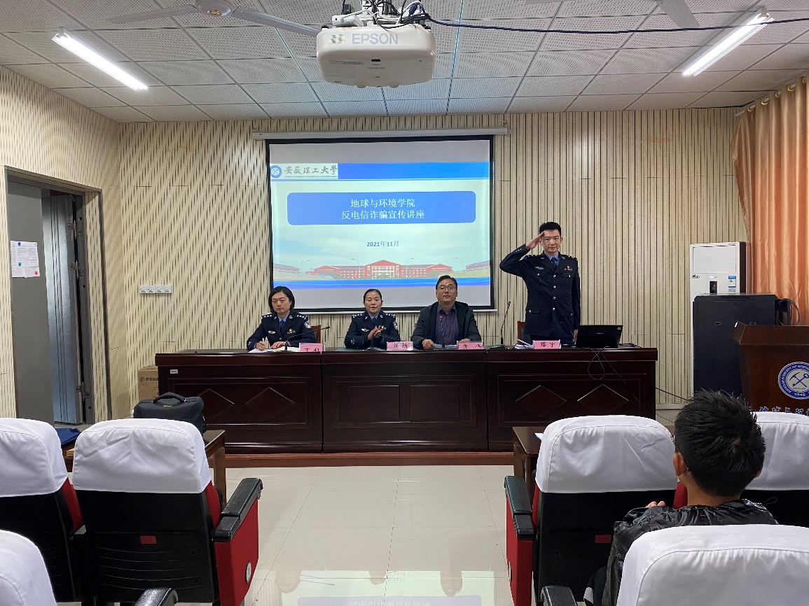 11月10日下午,电子轮盘 邀请淮南市公安局山南分局来院开展反电信诈骗专题宣讲活动。淮南市公安局山南分局监察室主任刘扬、刑警大队办公室主任郑宇警官等一行5人在静远楼406为电子轮盘 百余名师生代表开展反电诈普法宣讲。宣讲会由电子轮盘 党委副书记贾伟主持。