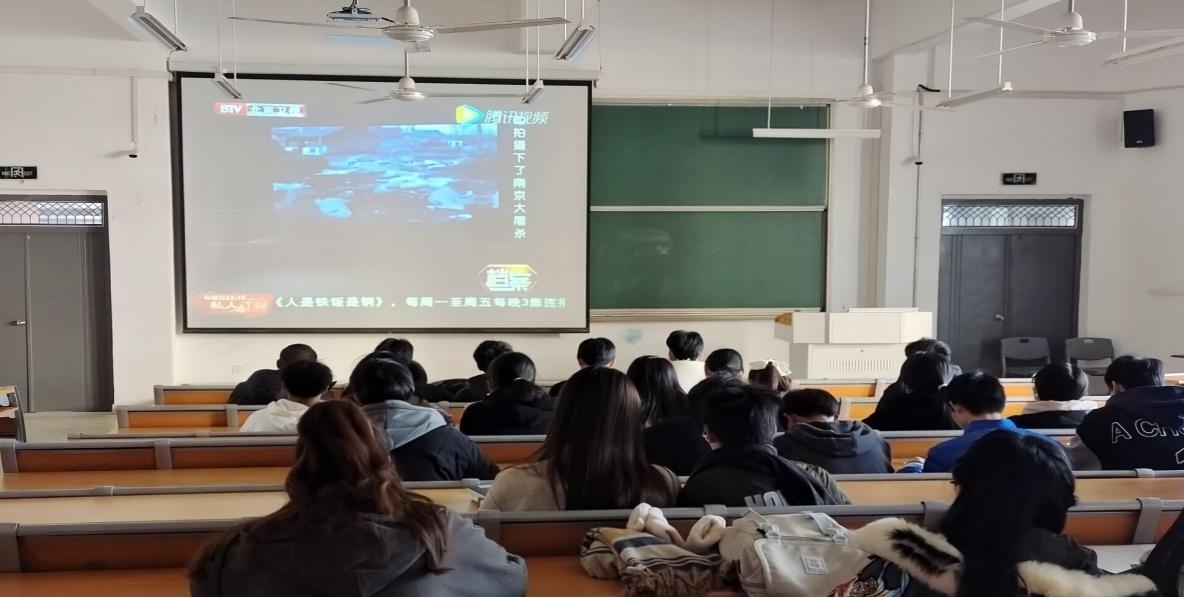 观影活动开始前,主持人为同学们介绍了国家公祭日的意义。来自各年级代表共同观看了由约翰·马吉所拍摄的电影《马吉默片》。约翰·马吉是美国圣公会传教士,南京大屠杀期间,约翰·马吉毅然留守南京,向中国平民提供人道主义援助,并冒险拍下日军暴行,为南京大屠杀留下唯一动态影像。后来,约翰·马吉当年使用的摄影机被保存在侵华日军南京大屠杀遇难同胞纪念馆。