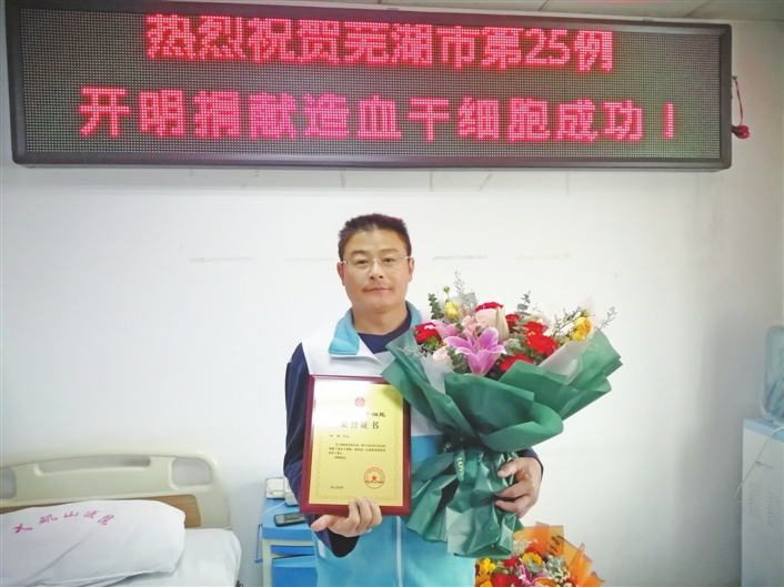 12月28日在芜湖弋矶山医院,电子轮盘 99级地质工程专业校友,中共党员,芜湖市勘察测绘设计研究院高级工程师开明圆满完成造血干细胞采集,成为芜湖市第25位造血干细胞捐献者。
