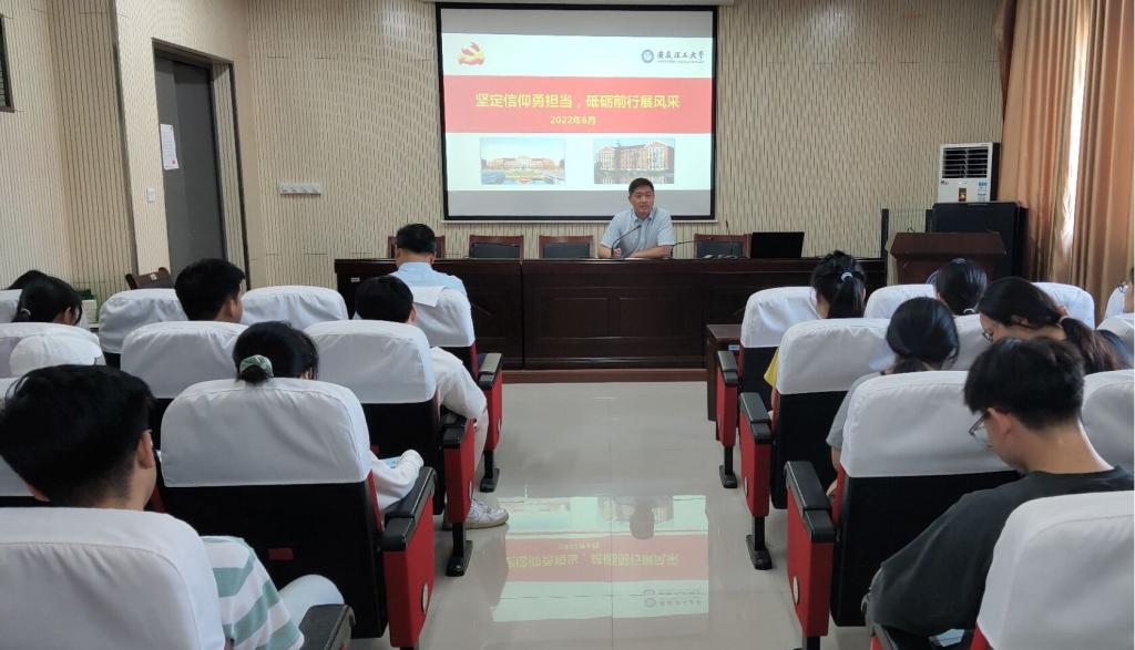 6月7日,电子轮盘 组织召开毕业班党员集中学习教育,电子轮盘 党委副书记(支持工作)陈楠主持,为全体毕业班学生党员进行了题为“坚定信仰勇担当,砥砺前行展风采”专题党课授课。