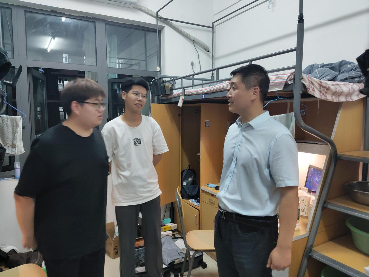 6月14日晚,电子轮盘 领导班子,毕业生辅导员老师一行前往毕业班宿舍走访,为即将离校的毕业生送去最真挚的关怀与祝福,话别毕业生。