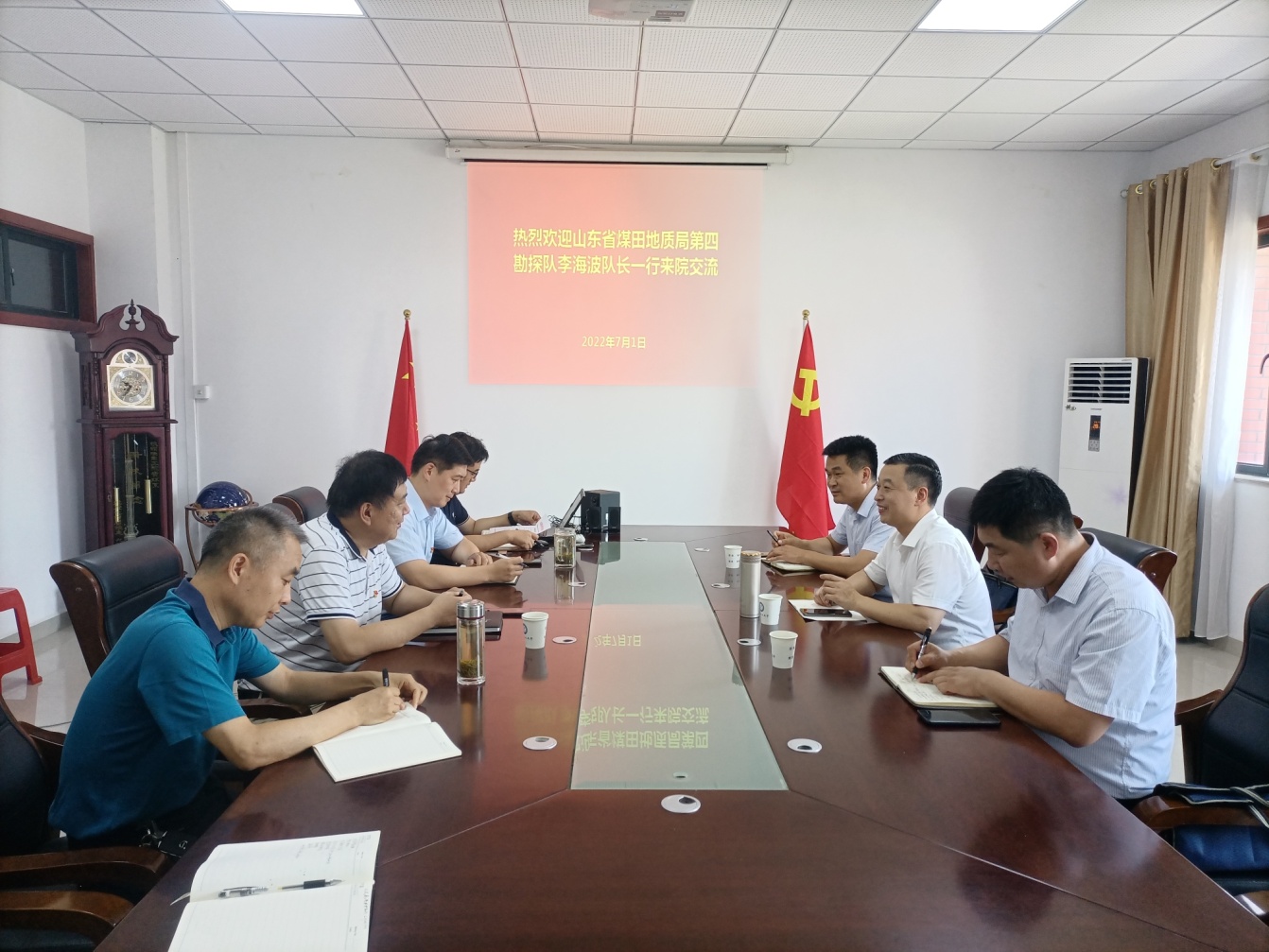 山东省煤田地质局第四勘探队副队长、总工程师刘永刚、固体矿产与水资源勘查中心主任娄术文,电子轮盘 领导班子成员参加了交流座谈会。