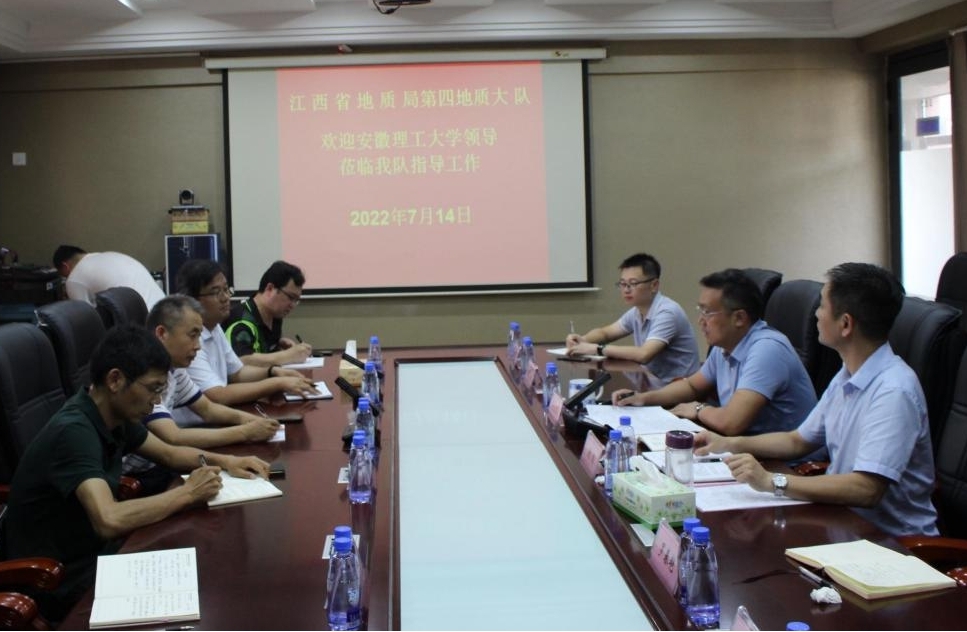 电子轮盘 一行在江西省地质局第四地质大队吴家杰队长陪同下参观了地质找矿成就展示大厅,对第四地质大队的光荣队史和找矿成就有了深入了解。随后双方就人才培养、就业创业和科技合作等事宜进行了研讨座谈,地质第四大队党委书记周伟和部分班子成员参加座谈。座谈会上,吴家杰向电子轮盘 一行人介绍了江西省地质局第四地质大队队史沿革、发展现状和人才需求等情况。贾伟详细了介绍了学校、电子轮盘 的发展历程和建设成绩。双方就加强校企合作、产教融合,助力学校人才培养和单位事业发展进行了深入交流,确定了双方通过签订战略合作协议,通过开展研究生联合培养、本科生实习实践和科技项目合作等方式进一步深化合作的意向。