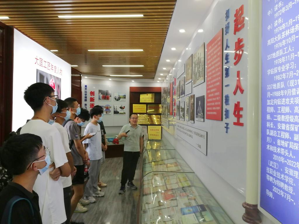 活动中参观了以全国劳动模范、全国道德模范、大国工匠朱恒银教授为主题的“劳模工匠精神教育基地”,展厅中丰富的矿石陈列、钻探科技创新的项目演示、地质队员的工作风采、“大国工匠”的成果和荣誉展示给师生留下了深刻印象。通过老照片和实物展,师生们被朱恒银扎根行业、敬业拼搏、力求创新的工匠精神所鼓舞,感受了他“尊贤孝义、和善信诚”的优良家风和不忘故土、根植心底的思源之情。
