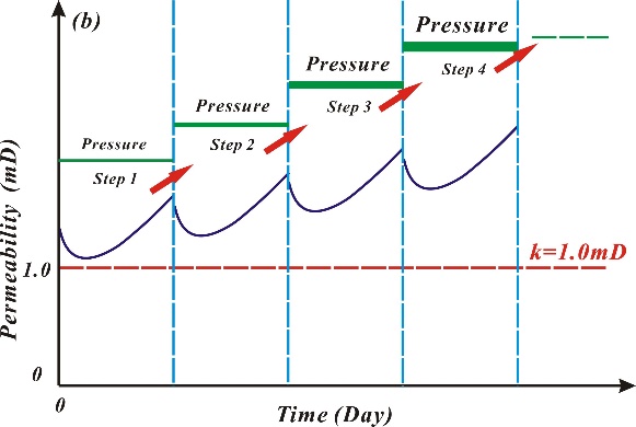 该研究综合考虑了温度效应、基质收缩效应、有效应力效应对煤储层流体运移及其渗透率等储层物性参数的影响,建立了煤层气开采过程中的流体场-温度场-应力场等多物理场全耦合数学模型,并进行了有限元法的多物理场耦合求解;示意了煤层气开采过程中渗透率的降低、回弹、恢复及增强规律现象,并详细分析了初始地质因素及后期工程实践等参数对其演化规律的影响;探讨了CBM与CO2-ECBM过程的渗透率演化机制,并剖析了渗透率变化对CO2地质封存的指示内涵。