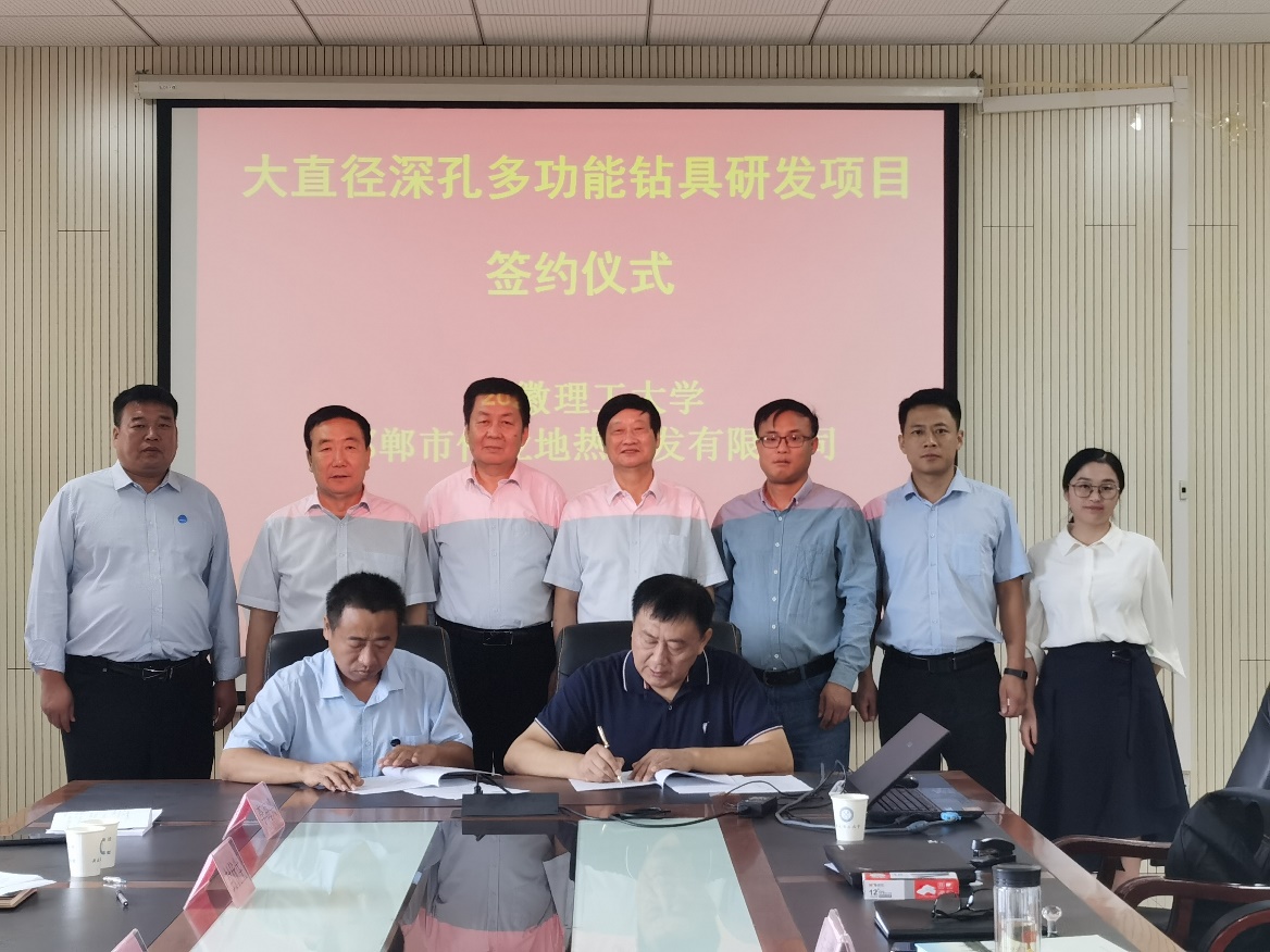 9月21日,邯郸市伟业地热开发有限公司党委书记李长福一行来电子轮盘 交流,并签订“大直径深孔多功能钻具合作研发”协议。交流会由电子轮盘 党委副书记、院长刘启蒙主持,“大国工匠”朱恒银教授出席会议。