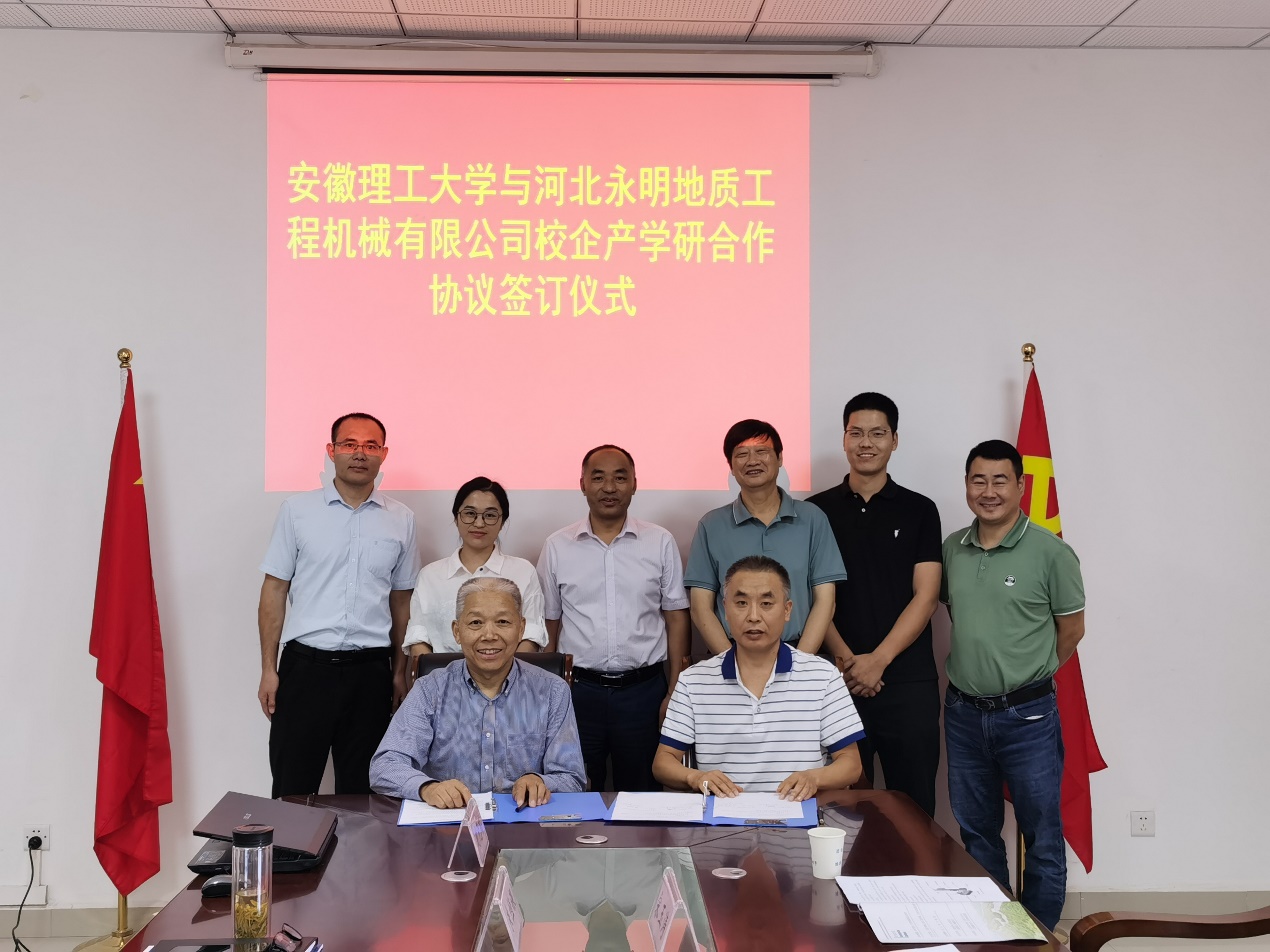 王占明总经理详细介绍了河北永明企业发展、钻探装备产品、科研项目等各方面内容方面。王占明表示安徽理工大学在煤炭领域有深厚的底蕴,河北永明主要产品是地质勘探钻机,很高兴能够与安徽理工大学牵手,希望后续加强合作,促进双方共同发展。