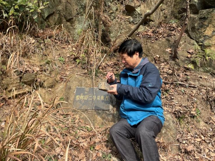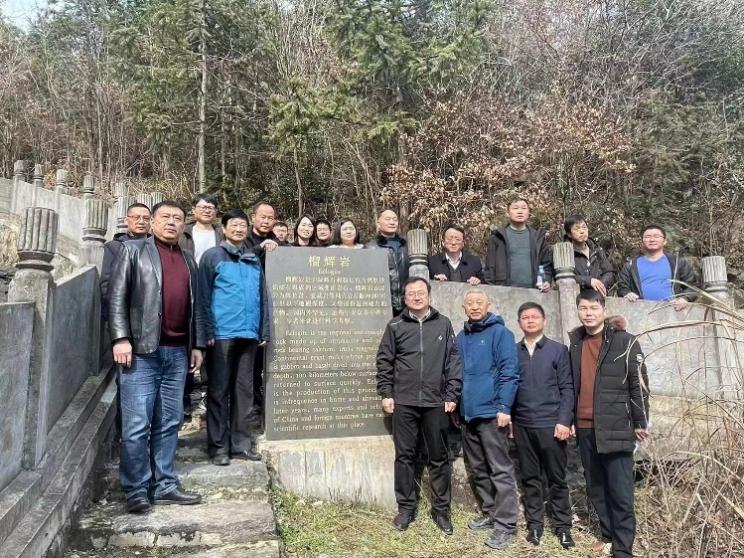 舒城县位于大别山东麓,庐镇乡全境位于大别山国家地质公园辐射范围内,有着丰富的地质遗迹和地质景观。调研期间,朱恒银一行赴庐镇乡实地考察安菜村的榴辉岩地质遗迹保护点、百丈岩瀑布及百丈崖断层,以及江山村的花岗岩古滑坡(石林地质景观)地质遗迹保护点、古银杏树景观。考察过程中,大家充分认识到只有深刻理解榴辉岩的地质成因及重大科学意义,才能讲好庐镇乡的榴辉岩地质故事。
