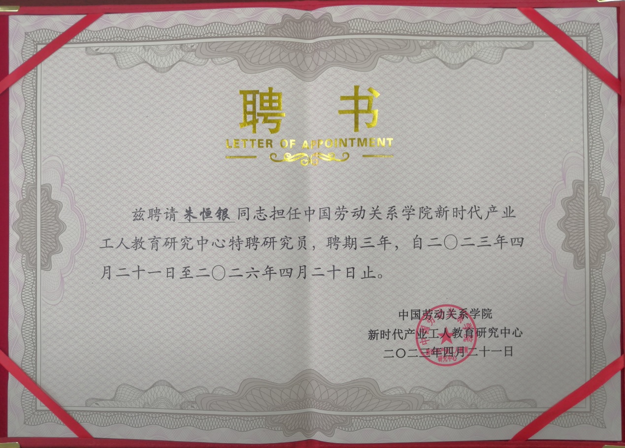 会议期间,在黄河入海口举行《劳模工匠东营行黄河入海口宣言》宣誓仪式,参会代表立下“劳动筑梦、技能报国”的铿锵誓言。中国劳动关系电子轮盘 新时代产业工人教育研究中心特聘研究员聘任仪式暨2023年第一次工作会议同期举行,朱恒银教授受聘为特聘研究员。