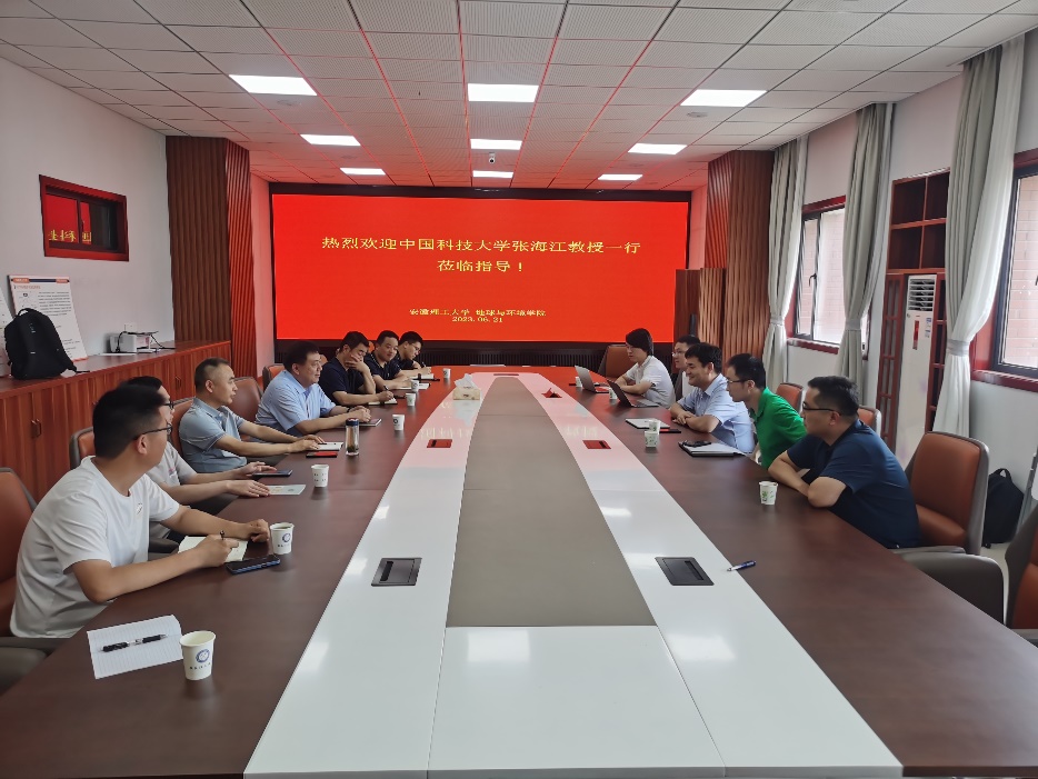 6月21日,应电子轮盘 邀请,中国科学技术大学张海江教授,团队成员马晓冬教授,高级副研究员,张诗淮副研究员,郑强强博士一行5人来电子轮盘 走访交流。电子轮盘 院长刘启蒙、副院长吴荣新、地质与勘查工程系主任胡雄武及部分骨干教师参加了座谈会。座谈会由刘启蒙院长主持。