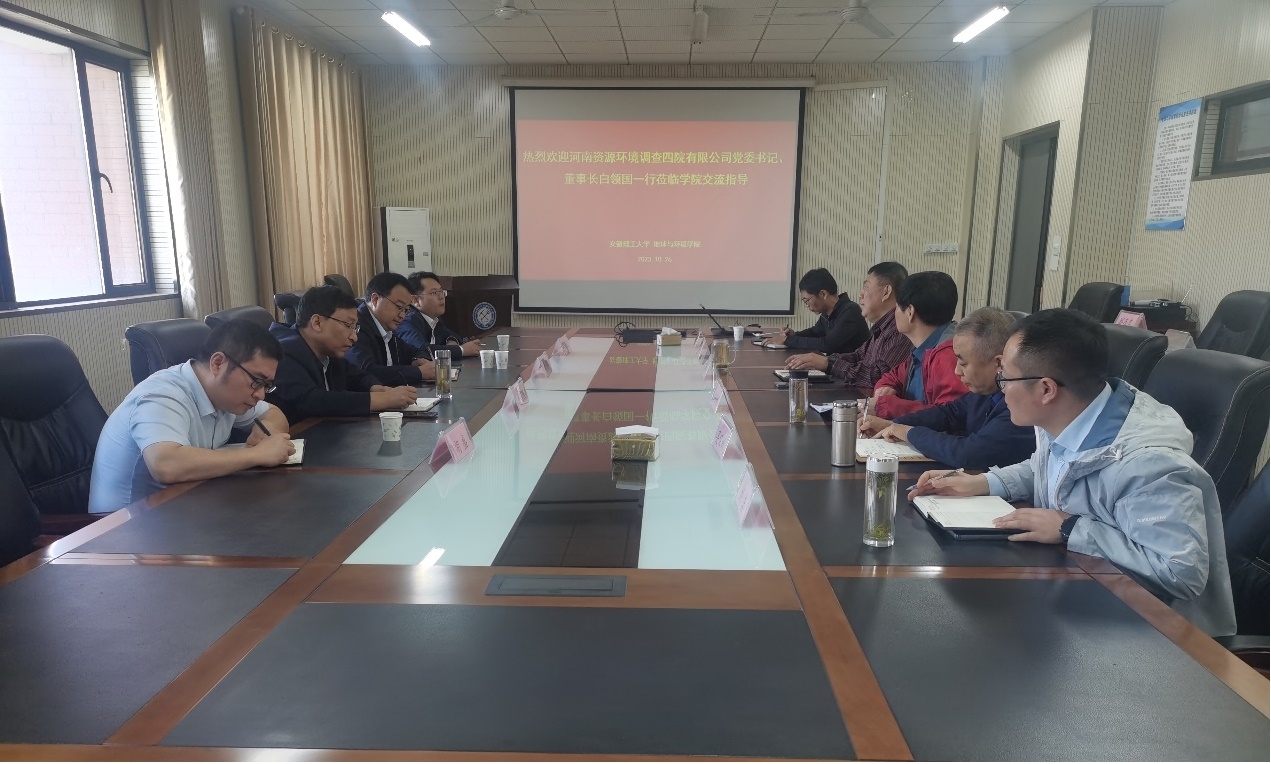 10月26日,河南资源环境调查四院有限公司党委书记、董事长白领国一行来电子轮盘 交流,电子轮盘 教授“大国工匠”朱恒银、院长刘启蒙、副院长吴荣新、张世文出席交流会。会议由刘启蒙主持。