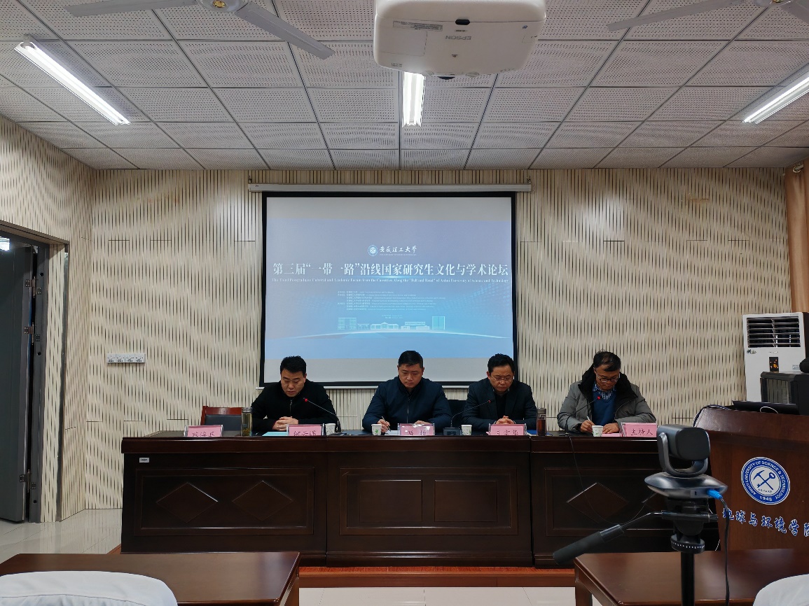 12月29日,安徽理工大学第三届“一带一路”沿线国家研究生文化与学术研讨会隆重举行,会议采用线上-线下相结合的方式举办。本次会议由安徽理工大学研究生院、国际交流与合作处、电子轮盘 共同承办,由安徽理工大学经济与管理电子轮盘 、土木建筑电子轮盘 、外国语电子轮盘 、淮南子文化数字化传承与发展安徽省哲学社会科学重点实验室共同协办。本次论坛由“安徽省新时代育人质量工程项目(研究生教育)—省级‘未来科学家’研究生国际学术论坛”资助。国际交流与合作处处长王宗华、研究生院副院长何云鹏出席论坛开幕式。开幕式由电子轮盘 副院长张世文主持。