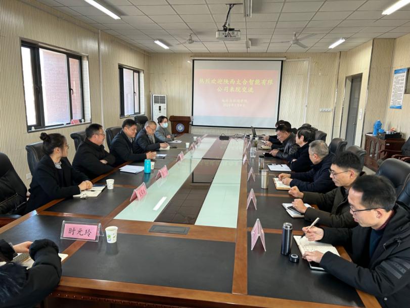 刘启蒙对陕⻄太合智能钻探有限公司一行的到访表示欢迎,并介绍了学校和电子轮盘 的学科专业建设、科技创新和人才培养等方面的情况,希望未来在科研合作、实践基地建设、学生就业等方面加强合作。