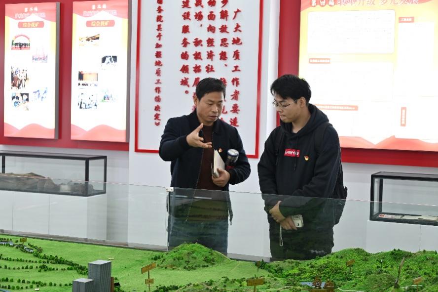 随后,党员师生在地质队专家及校友的带领下集体参观队史陈列室、朱恒银劳模工匠创新工作室和安徽深部钻探技术及应用重点实验室,进一步了解313地质队在地质找矿、地质科研、地灾防治、深部钻探等方面取得的成就,感受“大国工匠”朱恒银教授的劳动精神、创造精神、奉献精神。