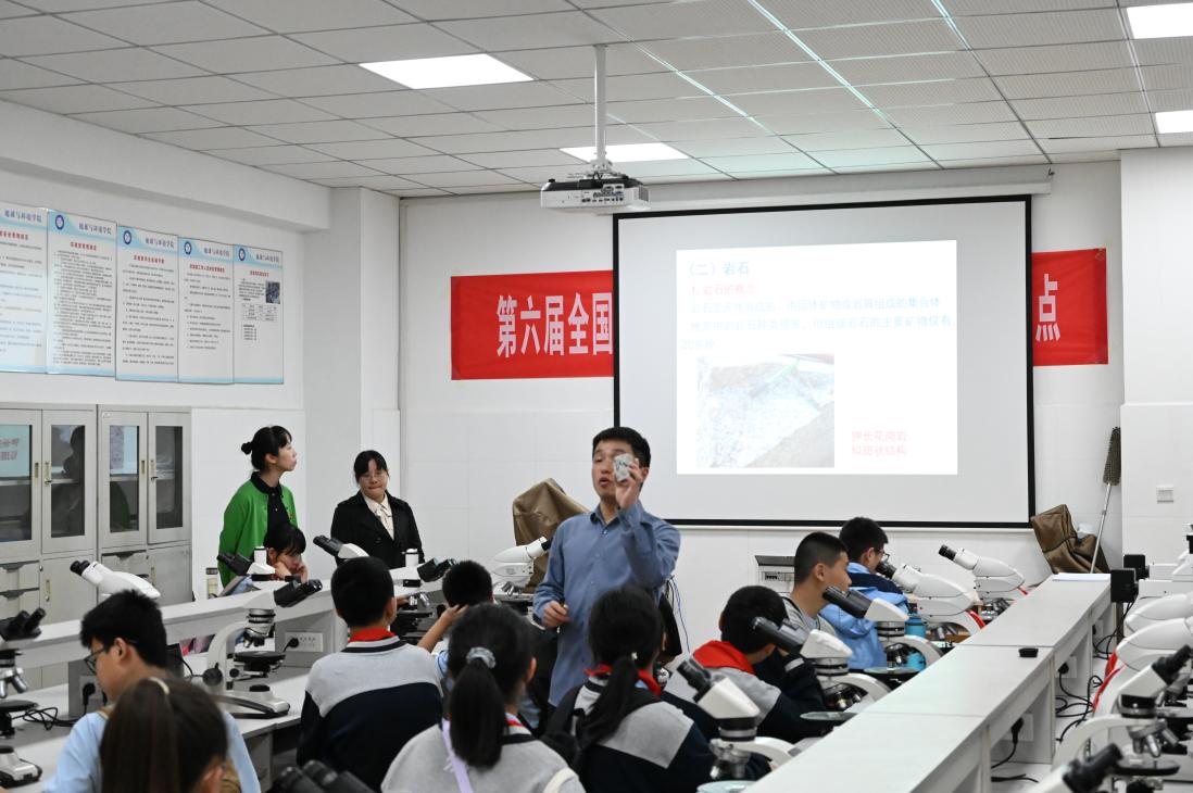 最后,同学们参观了安徽省地形地貌和淮南矿区沙盘,并亲身体验地学科学实验,品鉴岩石标本,通过显微镜观察矿物岩石玻片,感受岩石之美。